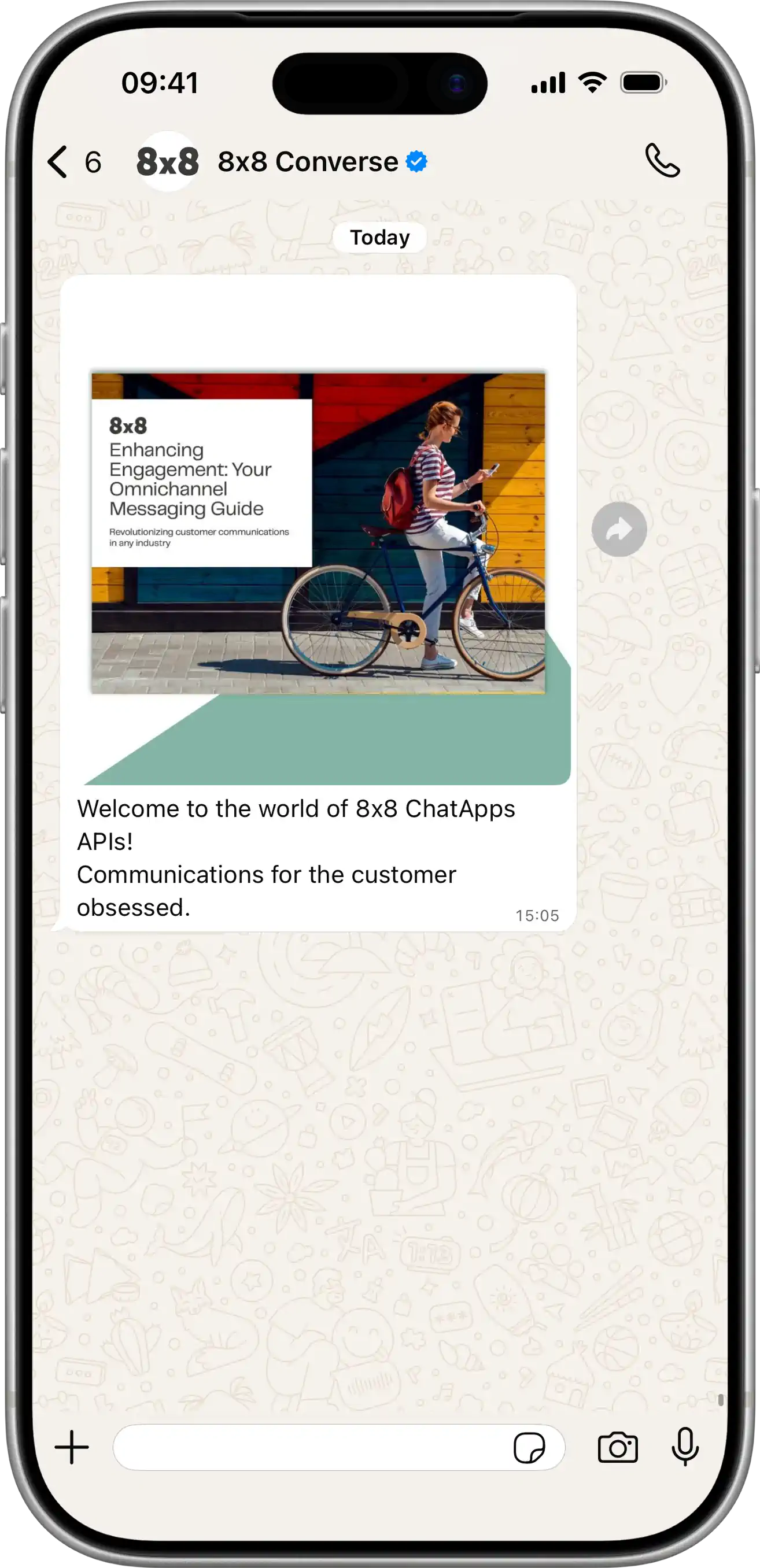 Image Message | Send Message: POST /api/v1/subaccounts/{subAccountId}/messages Sends an image from a URL with optional text caption. View JSON{ "user": { "msisdn": "{{PhoneNumber}}" }, "type": "Image", "content": { "url": "https://chatapps.8x8.com/files/7723febafb67440b89c6872e9d72efdd.jpeg?token=CfDJ8LwbBIzqYzxMo4VXraj4E8kbpPbOLHNZ3GfGzhGDm3ajqPMrbjJONU3UAtPsnv00QjW7FYXfmj5QMjTz9hbcVRMnhy-jJWfHshe83bNAzbZjJwkaf-31Ok2UXF7C6fyAOPTKVPOnUU3ERQcgvkE7GC-NZf9vJnt7_cDoHKjawoPyxrodvh7LRtIqVKR-TDysUg", "text": "Welcome to the world of 8x8 ChatApps APIs!\nCommunications for the customer obsessed." } }