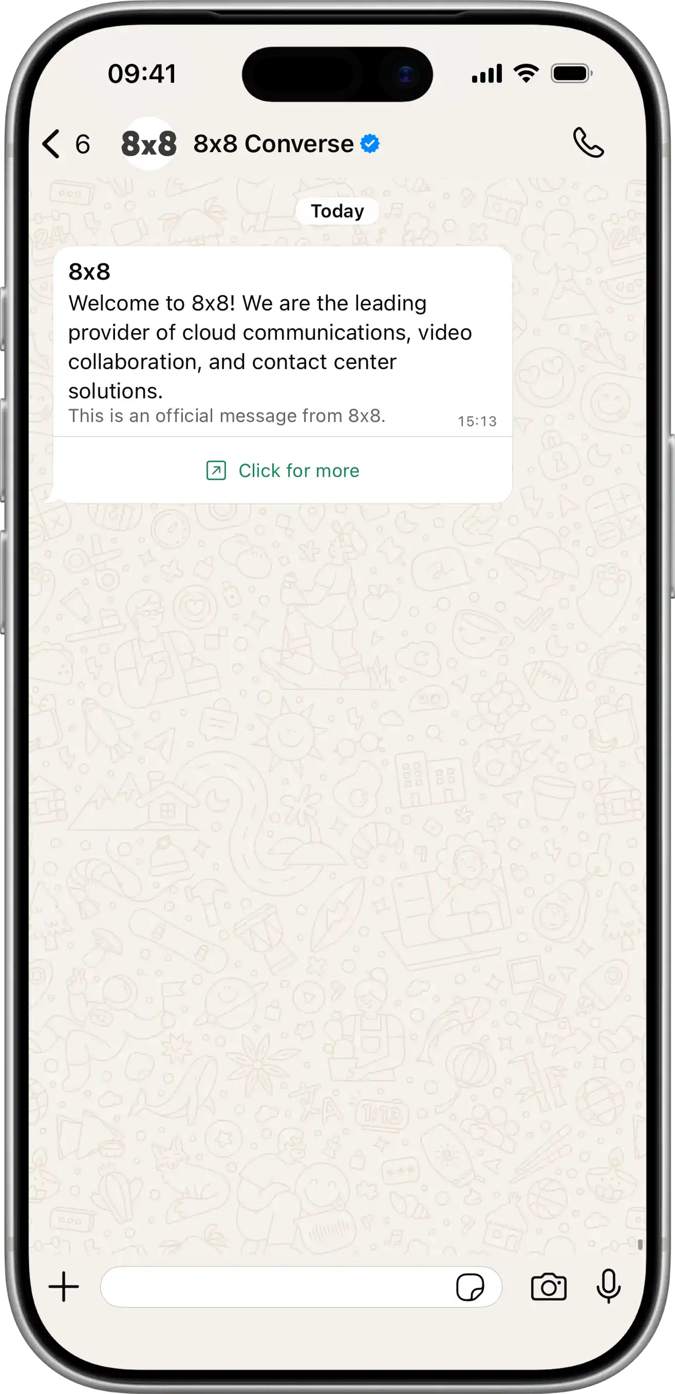 | Send Message: POST /api/v1/subaccounts/{subAccountId}/messages Creates a message with a single CTA button that can open a URL or initiate a phone call. View JSON{ "user": { "msisdn": "{{PhoneNumber}}" }, "type": "interactive", "content": { "interactive": { "type": "cta_url", "header": { "type": "text", "text": "8x8" }, "body": { "text": "Welcome to 8x8! We are the leading provider of cloud communications, video collaboration, and contact center solutions.\n\n" }, "footer": { "text": "This is an official message from 8x8." }, "action": { "parameters": { "display_text": "Click for more", "url": "https://developers.facebook.com/docs/whatsapp/cloud-api/messages/interactive-cta-url-messages" } } } } }